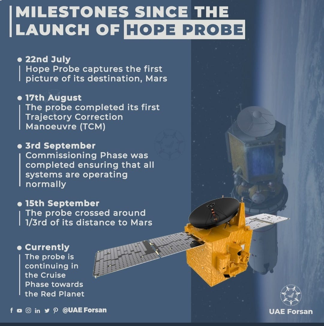 After traversing hundreds of millions of kilometers, the uae's inaugural spacecraft — the hope probe — is just days away from reaching mars. The hope probe successfully detached from the launch missile, and the first signal from the probe was received at the al khawaneej control center. With 189 million kilometers remaining, the hope probe will reach its planned orbit around mars on feb. The hope probe is the first of its kind to monitor climate change on mars, as it will fully the speed of the probe will slow down when it reaches mars to 14,000 km per hour, then it will start orbiting mars. According to its live tracker, it's some 8 the uae's hope probe is at an extraordinary stage bringing success and optimism to the entire arab and.